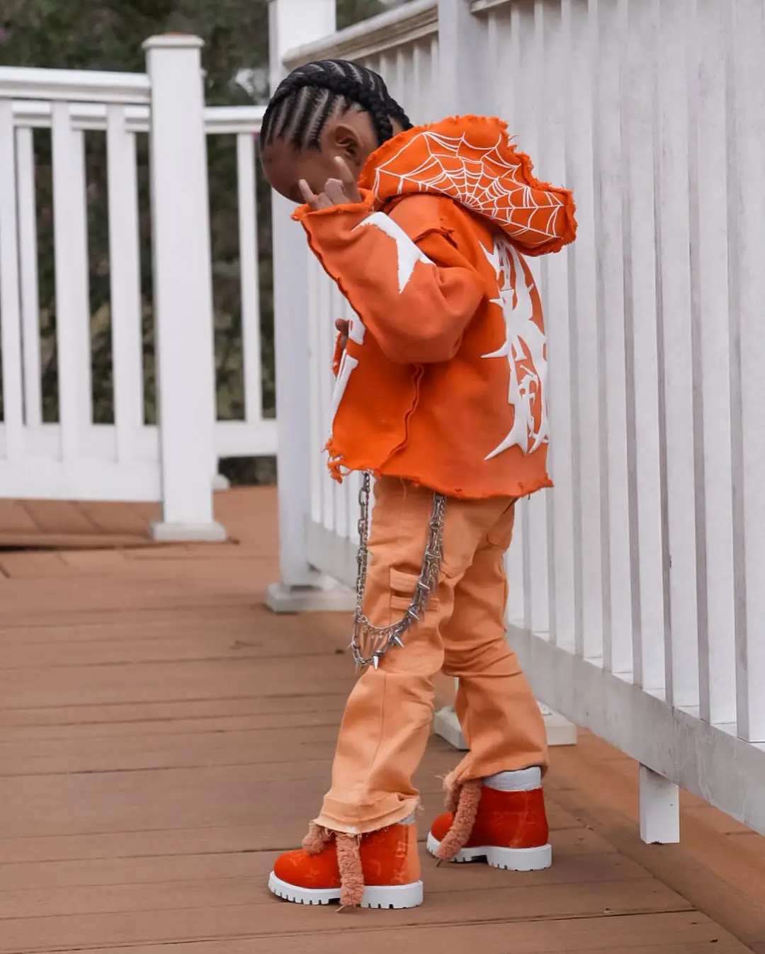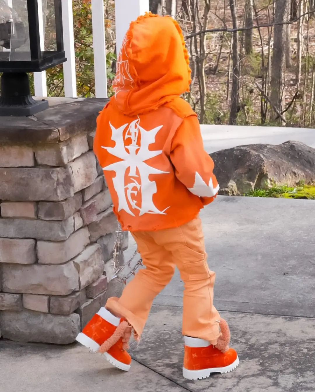 Custom Kids Streetwear Set Distressed Acid Wash Puff Print Cotton Hoodie Pants SweatSuit Jogger Kids Tracksuit